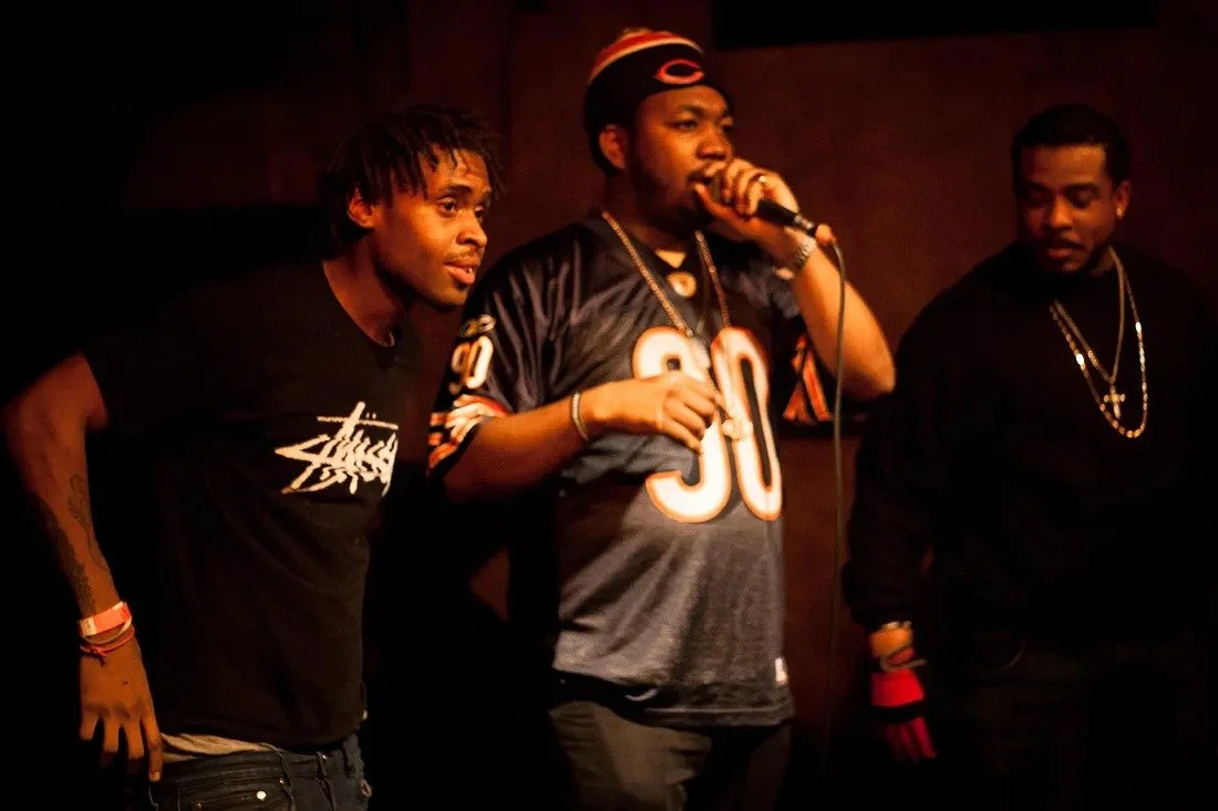 It’s midnight at a small west-side Chicago bar, and it’s crowded. Snapbacks and tattoos stand stark under dim yellow lights, and the DJ behind the stage scratches his plates to change tracks. Heads bob to heavy beats, and an emcee stands in front of the circled crowd preparing to announce the next performer at the hip-hop open mic.